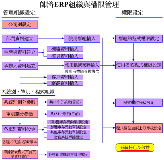 一、帥將ERP共有七階的權限設定及控制功能: